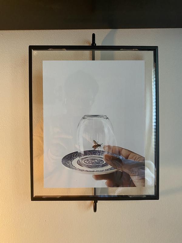 • sleek and modern frame: Introducing phantom by umbra phantom is a unique photo frame that floats one 8 x 10 photo between two panes of glass and uses wire to make the floating frame hover away. So get them off your phone and into your home with this new phantom multi photo display from umbra. Offset from the wall, this metal wire frame creates the illusion that your 8 x 10 picture is floating. Simply tuck photos, recipes, cards and more behind tucker's metal dowels.